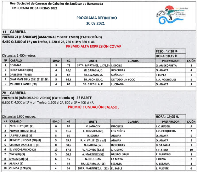 Enlace a la declaración de participantes definitivos de la web del jockey club