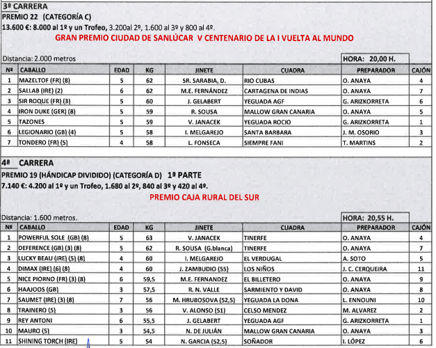 Tercera. Condicional. 3a+. 2000 metros. Gran Premio Ciudad de Sanlúcar (Cat.C)